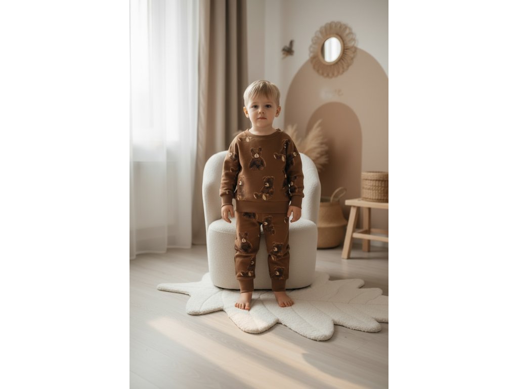 Detský bavlnený komplet s krásnym motívom macíka pozostáva z mikiny a teplákov. Vhodný pre chlapčeka ale aj dievčatko.