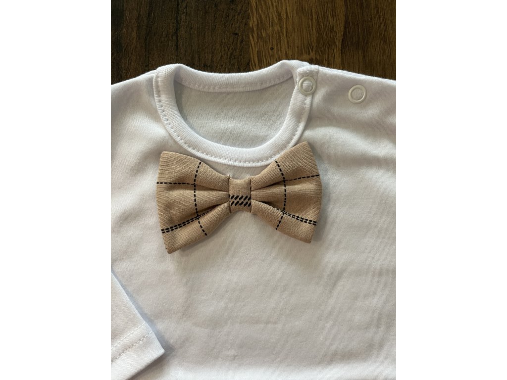 Bavlnené body - biele, s dlhým rukávom a našitým motýlikom v rovnakom dizajne ako nohavice, zapínanie na patenty v spodnej časti aj na ramene