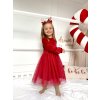 Dievčenské vianočné červené šaty sú šité z príjemného velúrového materiálu doplnené krásnou tylovou látkou na spodnej časti. Praktické rozopínanie na zips na chrbte.