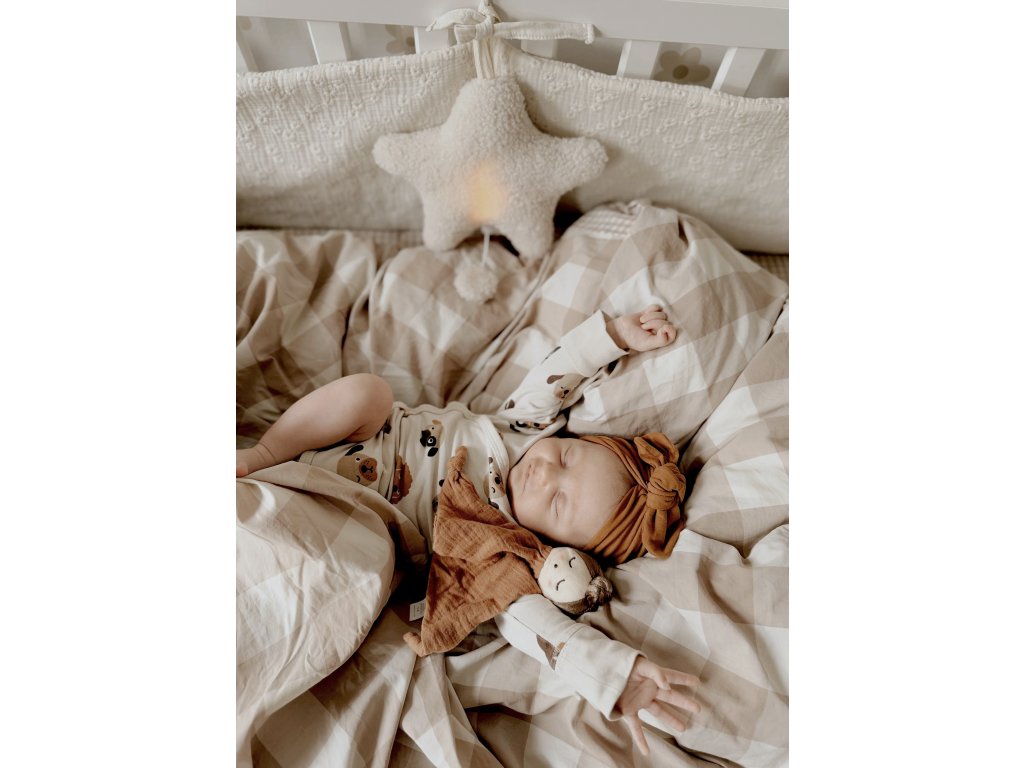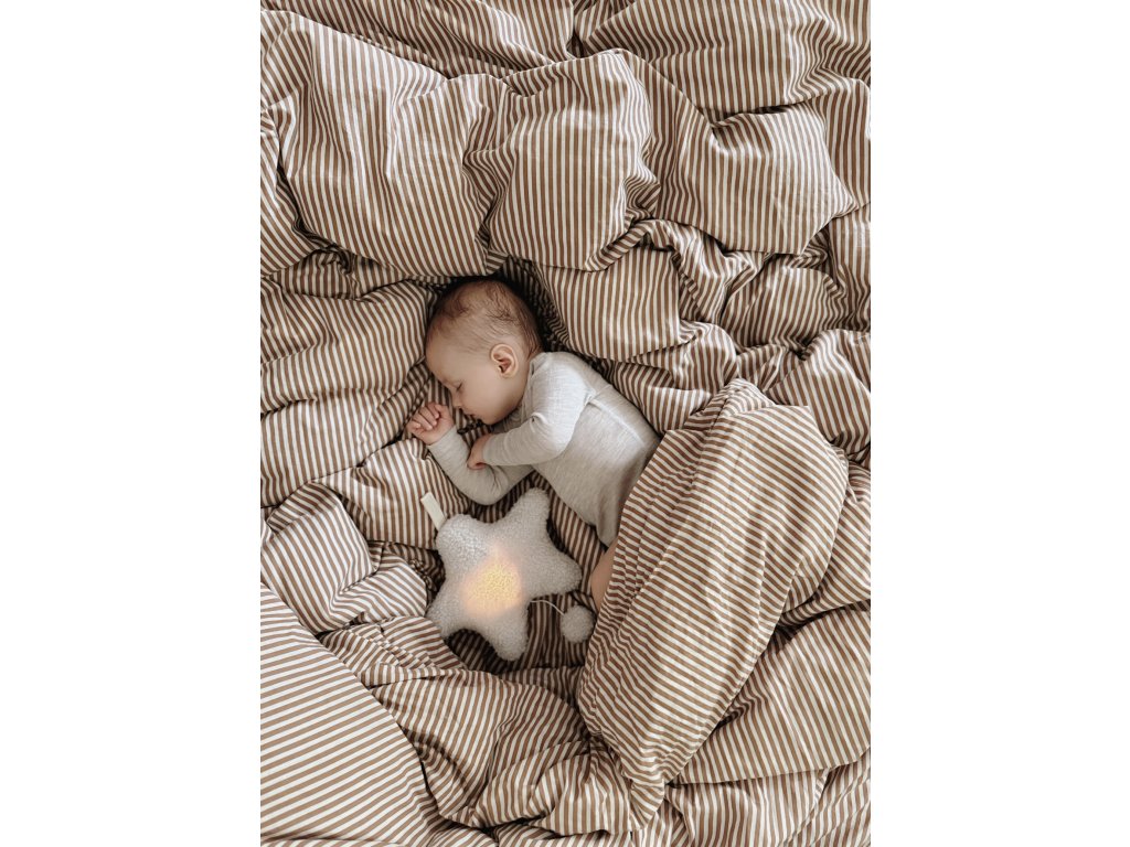 Nočné svetielka v zemitých tónoch sú vyrobené z organickej bavlny a sú vhodné od narodenia. Vnútorné svetlo má tri varianty odtieňov (biela, béžová a teplá) a rôzne intenzity svietenia. Svetielko jednoducho nabijete cez USB.