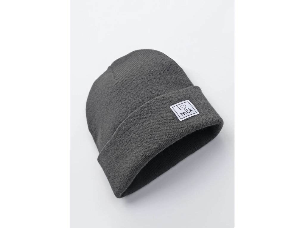 Prechodná detská čiapka I love milk - tmavosivá