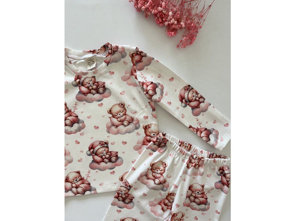 Roztomilé detské pyžamo so vzorom spiaceho medvedíka je ideálnou voľbou pre sladké sny vašich najmenších. Vyrobené z kvalitnej bavlny, je jemné, priedušné a šetrné k citlivej detskej pokožke.