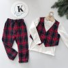 Oblečte svojho malého džentlmena do štýlového sviatočného kompletu ideálneho na vianočné oslavy! Tento elegantný detský set pozostáva z troch kusov: klasické kárované nohavice, vesta s rovnakým vzorom a jednoduché biele bavlnené tričko s dlhým rukávom. Nohavice a vesta sú šité z kvalitnej viskózy, tričko zo 100% bavlny. Set je jemný na dotyk a zaručuje pohodlie pri nosení.