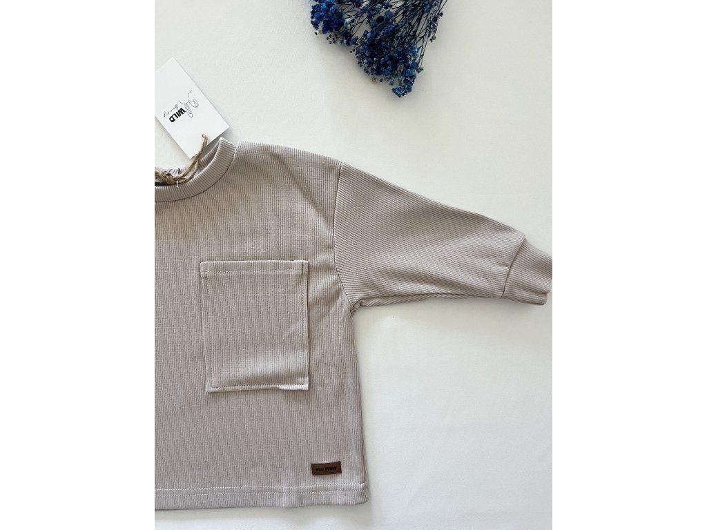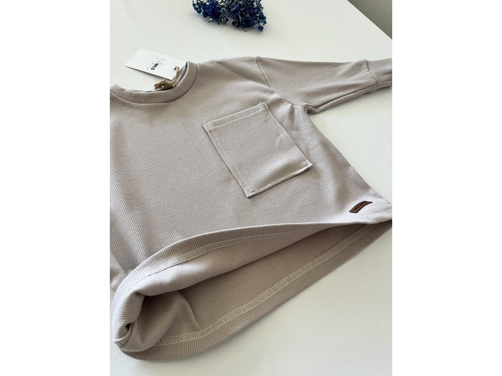 Detské tričko s dlhým rukávom z mäkkého rebrovaného materiálu. Tričko má okrúhly výstrih, vpredu prišité vrecko a logo značky Wild Bunny. Je širšieho strihu - oversize. Tento basic kúsok Viete doplniť o legíny alebo tepláky z našej ponuky od tej istej značky. Je ľahko kombinovateľný a nemal by chýbať v šatníku Vášho drobca. Tento výrobok je handmade.