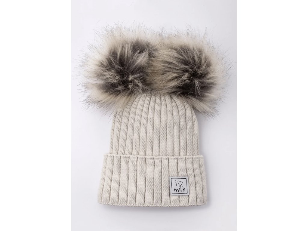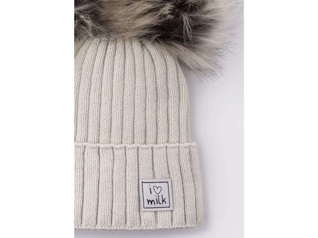 Zimná čiapka I LOVE MILK s brmbolcami - béžová