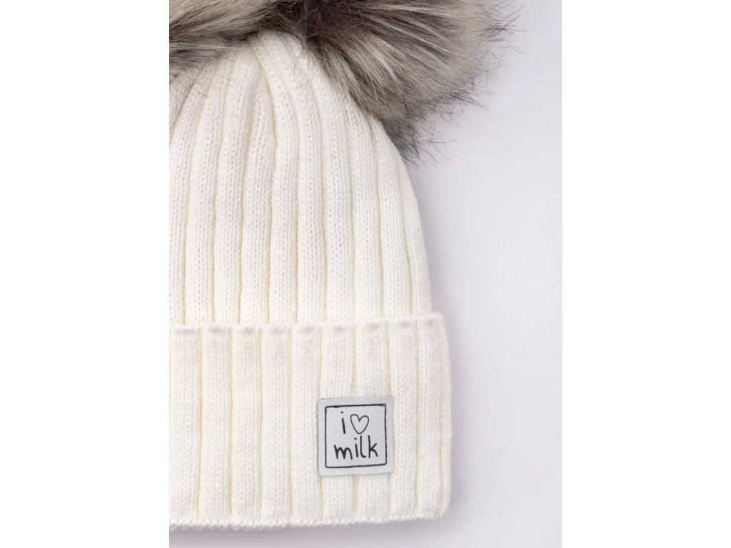 Zimná čiapka I LOVE MILK s brmbolcami - biela