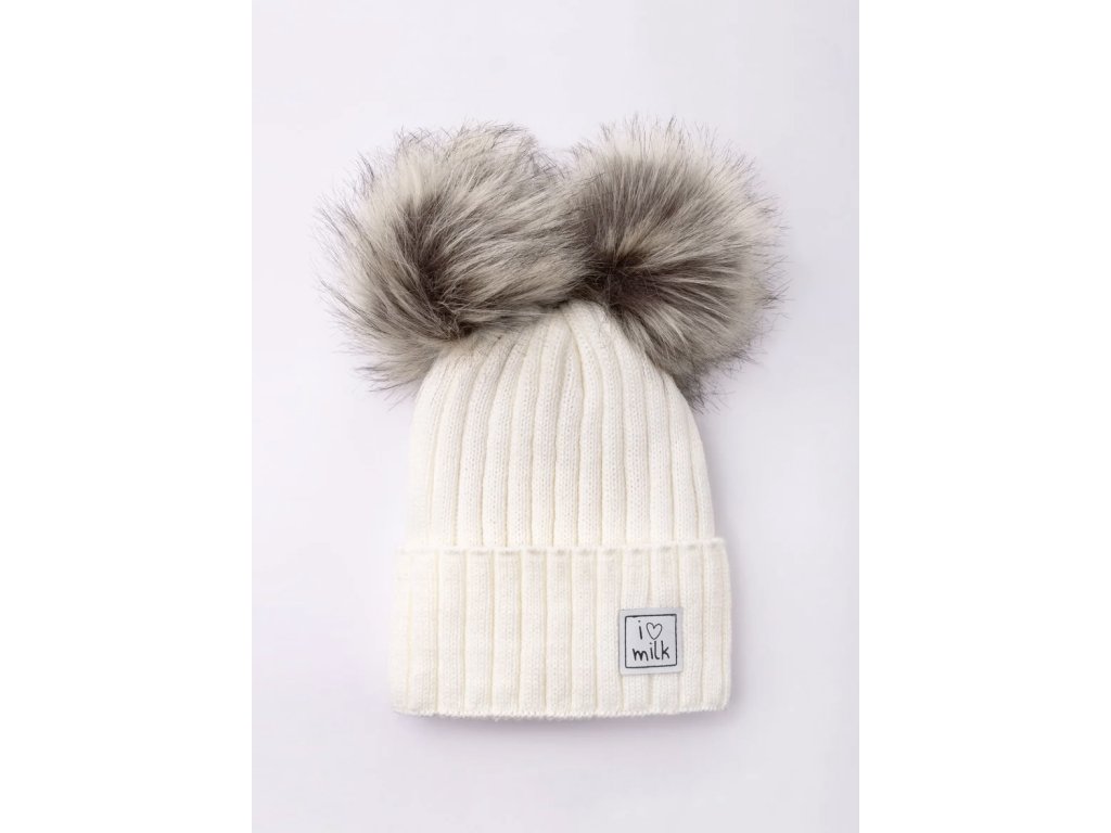 Roztomilá detská zimná čiapka, ktorá nielen zahreje, ale aj poteší svojím hravým dizajnom a Vaše detičky ju budú milovať. Mäkký rebrovaný úplet je príjemný na nosenie a dobre sa prispôsobí hlavičke dieťaťa. Na prednej strane sa nachádza štýlová nášivka značky I love milk. Čiapka má dve veľké nadýchané brmbolce, je podšitá fleecom, vyrobená z akrylovej látky. Veľkosť je univerzálna pre deti vo veku od 1 do 6 rokov. Vhodná pre dievča či chlapca.