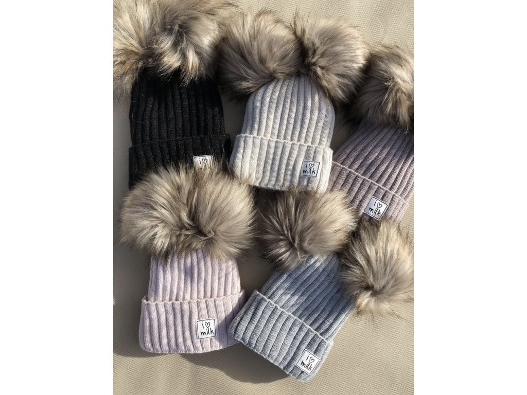 Roztomilá detská zimná čiapka, ktorá nielen zahreje, ale aj poteší svojím hravým dizajnom a Vaše detičky ju budú milovať. Mäkký rebrovaný úplet je príjemný na nosenie a dobre sa prispôsobí hlavičke dieťaťa. Na prednej strane sa nachádza štýlová nášivka značky I love milk. Čiapka má dve veľké nadýchané brmbolce, je podšitá fleecom, vyrobená z akrylovej látky. Veľkosť je univerzálna pre deti vo veku od 1 do 6 rokov. Vhodná pre dievča či chlapca.